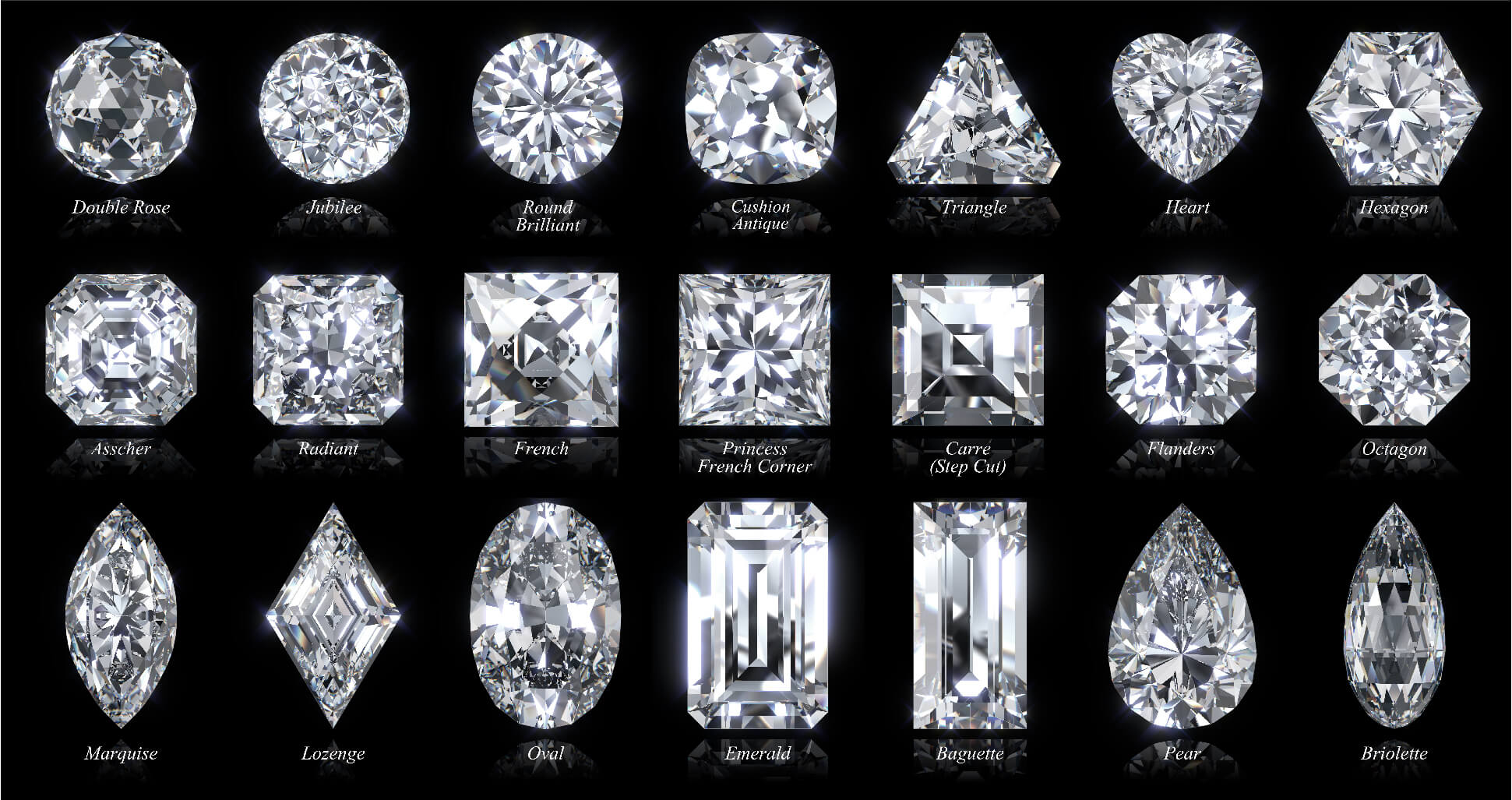 Due to the belief that genuine diamonds possess the special properties that do not appear in other types of gemstones, for diamond is considered to be the strongest mineral according to Moh’s scale (1). Besides, its sparkle is the result of the carbon crystal arrangement in octahedron shape, like 2 pyramids joining together (2). Another special quality of diamond is its numerous colors since there are pure white diamonds as well as the fancy color ones. These properties together make diamonds the unique gemstone.